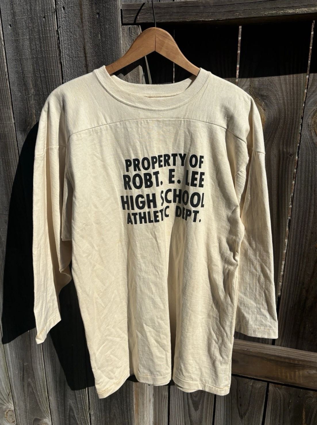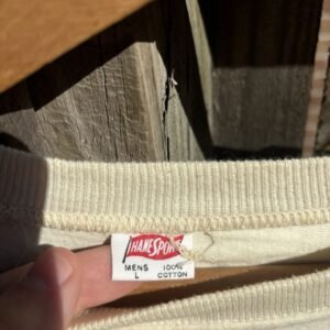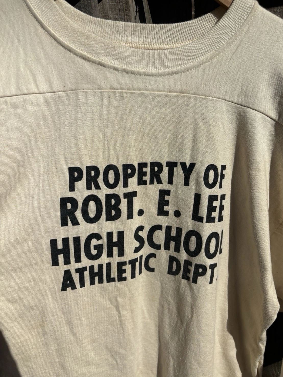 Seltenes Vintage Hanesport T-Shirt aus den 60er Jahren mit einzigartigem Robert E Lee School Print. Dieses gepolsterte Shirt überzeugt durch seinen authentischen Retro-Stil und hohen Tragekomfort. Ein echtes Sammlerstück für Vintage-Liebhaber und Streetwear-Fans.